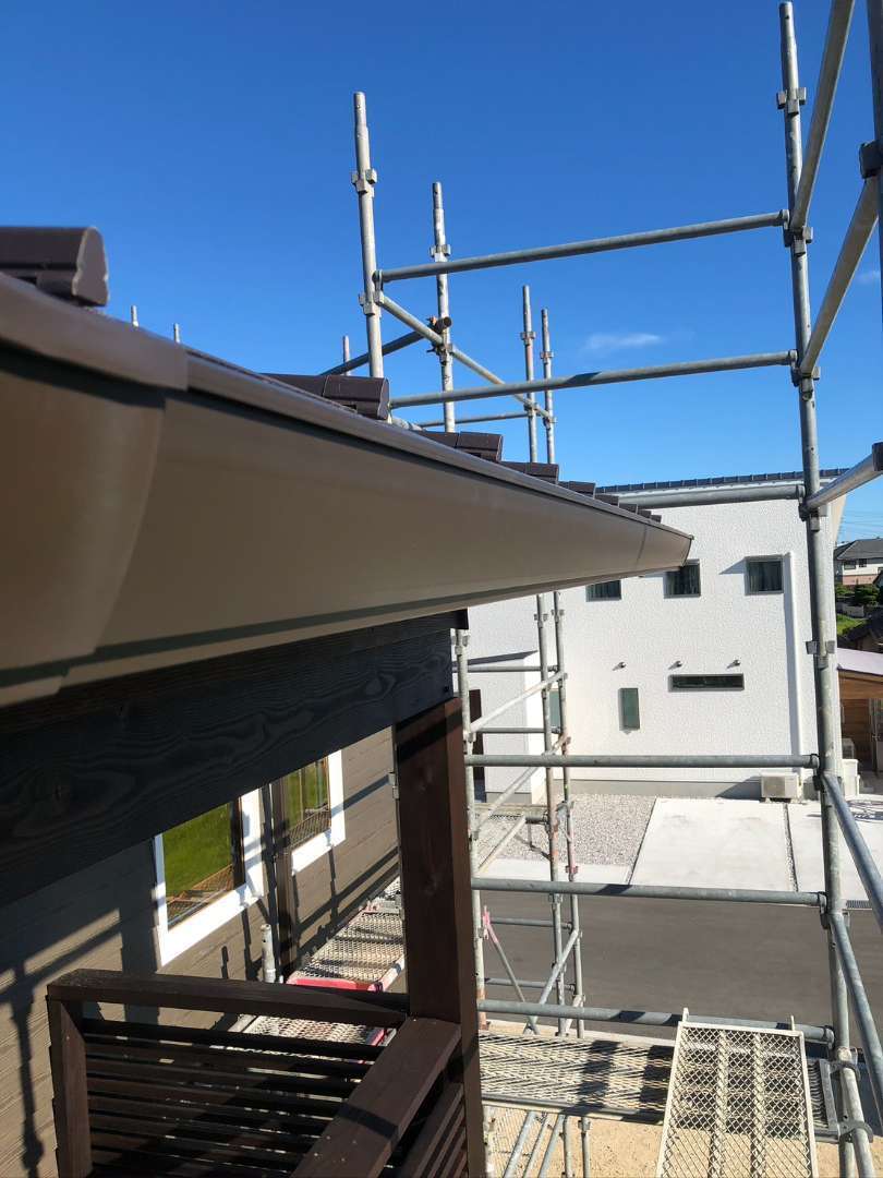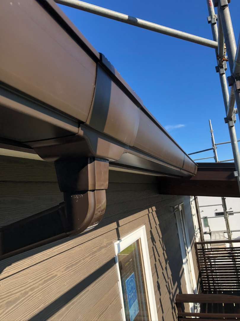 今回は、落ち着いたブラウンの塩ビ雨樋を設置した戸建て住宅の事例です。